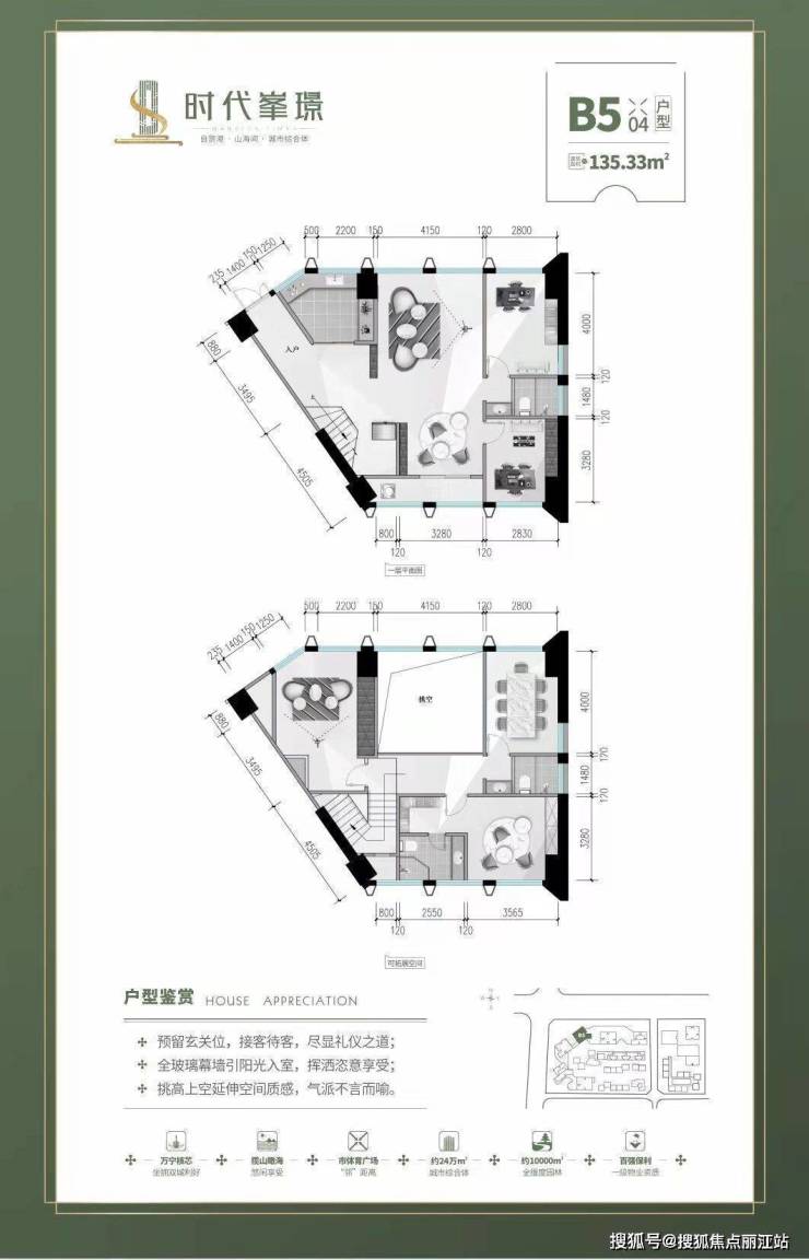 建面约69-135m²【创意空间】总层高18层,挑高5米4。