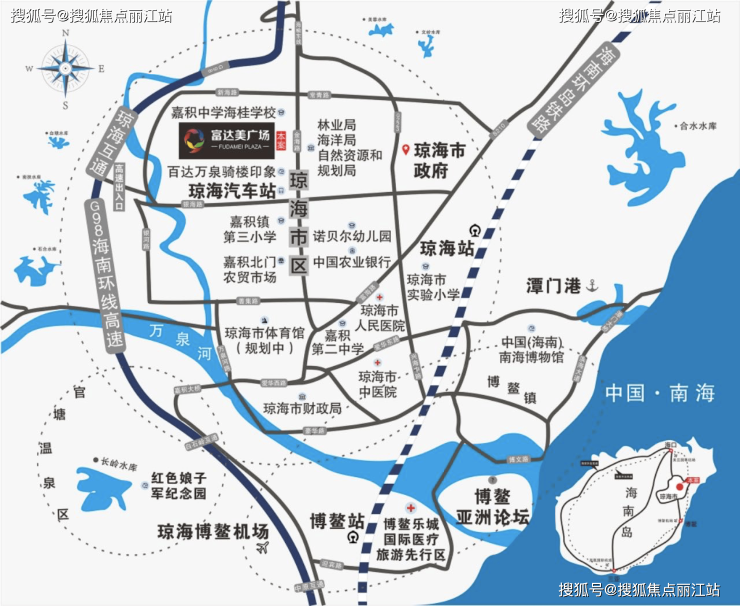 【富达美广场】是琼海市重点项目,处于琼海城北核心地段和行政中心区域。海南著名学校海桂中学一墙之隔,行政中心近在咫尺,琼海城北新地标,地理位置优越,享有机场、高铁、环岛高速公路三维立体交通。