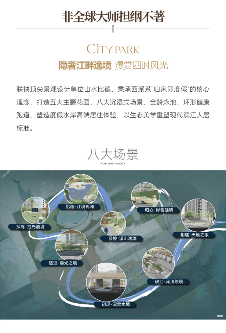 8、山水比德顶尖设计团队操刀,园林融合“归家即度假”理念,规划五大主题花园及八大沉浸式场景,打造水岸生态社区