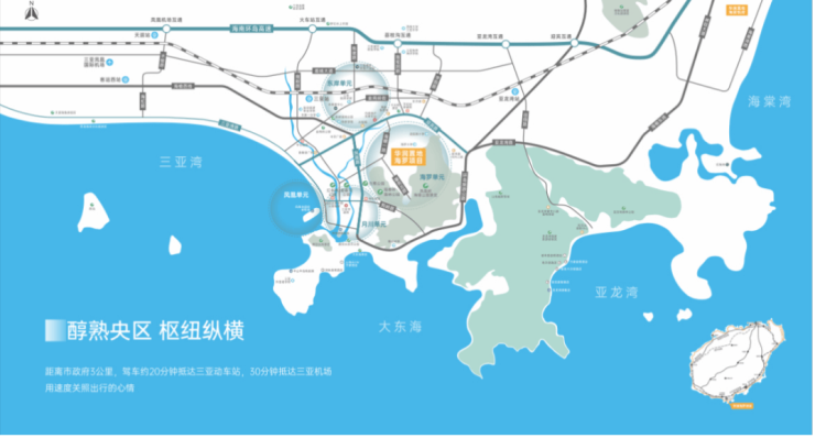1.5公里生活配套圈:三亚妇幼保健院、星级酒店、文化剧场等。