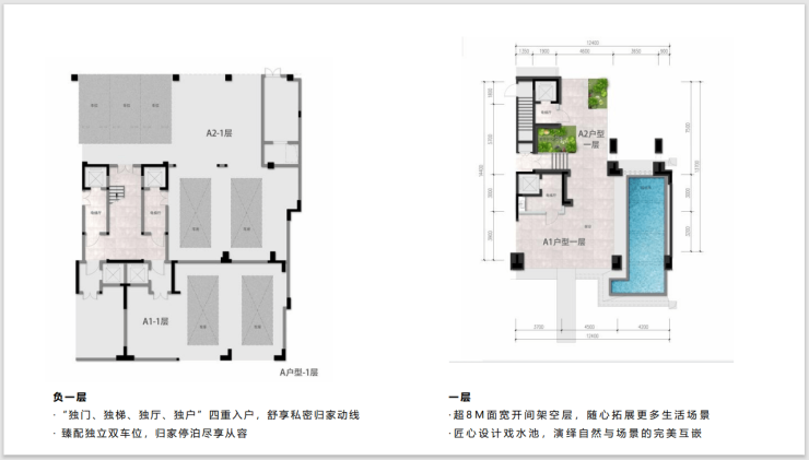 下叠建筑面积163㎡,3F2T3W,赠送209平米(含地下车库面积86平米,架空层庭院面积83平米,阳台30平米),共4层(负一层车库,首层,二楼,三楼),别墅地下车库以及首层层高3.9米,二楼三楼卧室层高3.3米,客厅挑高4.6米