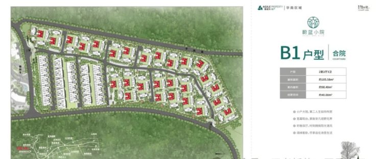 • 多元面积段:建面约103㎡-105㎡的灵巧合院,建面约102㎡&139㎡联排合墅。