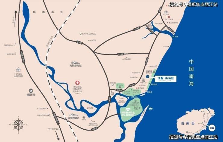 博鳌·南海蓝,择址博鳌海岸边,距离海岸线约100米,距东岛屿、博鳌亚洲论坛永久会址约1500米,距离玉带滩约1000米,近距离享受海居生活。