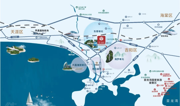 公园配套:东岸湿地公园,金鸡岭桥头公园、临春岭公园。距离凤凰机场约14公里距离三亚高铁站约6公里距离三亚湾约公5里距离亚龙湾约20公里