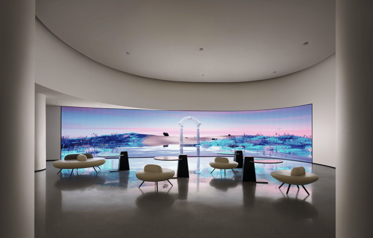 在整个空间中,现代主义设计美学贯穿始终,流动的曲线造型犹如生命之脉,赋予空间以独特的韵律与动感,这些曲线灵动而多变,它们营造出了一种开放包容、生机勃勃的空间氛围。