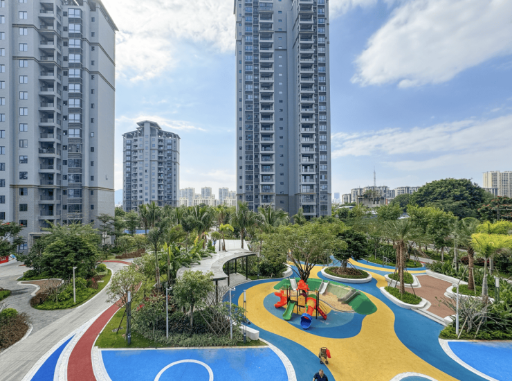 除了现房优势,海垦・桃花源的产品力也十分能打。它不仅是今年竣备验收、交付的现房,1.8 的容积率更是在新盘中格外亮眼,比不少新出的地王项目容积率还低。低容积率意味着居住空间更舒适,海垦・桃花源 C 区仅有 5 栋住宅,借助 1.8 的容积率,打造出最大约 66m 的楼间距。项目园林面积约 1.1 万㎡,搭配 370 户的小型社区,户均含园量高达约 30㎡,每栋楼都能拥有绝佳景观面,住在这儿就像置身花园。