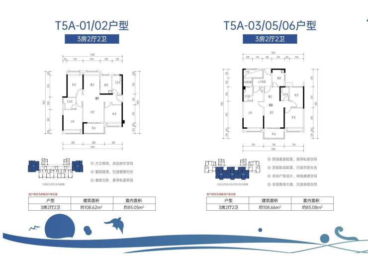 ①T5A户型 108㎡ 三房两厅两卫