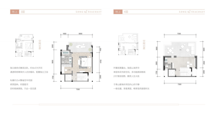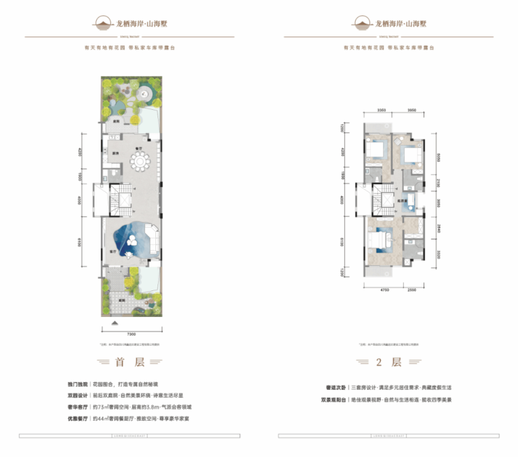 顶层约 46m²的揽景双露台与一层双庭院形成呼应,这才是真正“背山面海,有天有地”的生活。