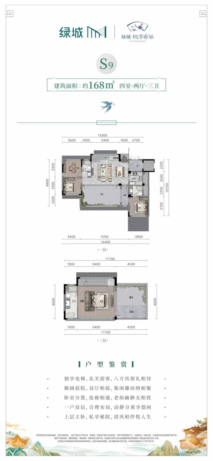 每家每户均享有阔尺庭院,一楼自带大庭院,在庭院里植一株杏花,便是归家的方向;二楼平层结构,以空中庭院,让天空及园景在院落里相逢;三加四楼复式结构,衔接诗意庭院,可品晨光熹微,可观夜幕星辰,梦田中的理想生活触手可及。