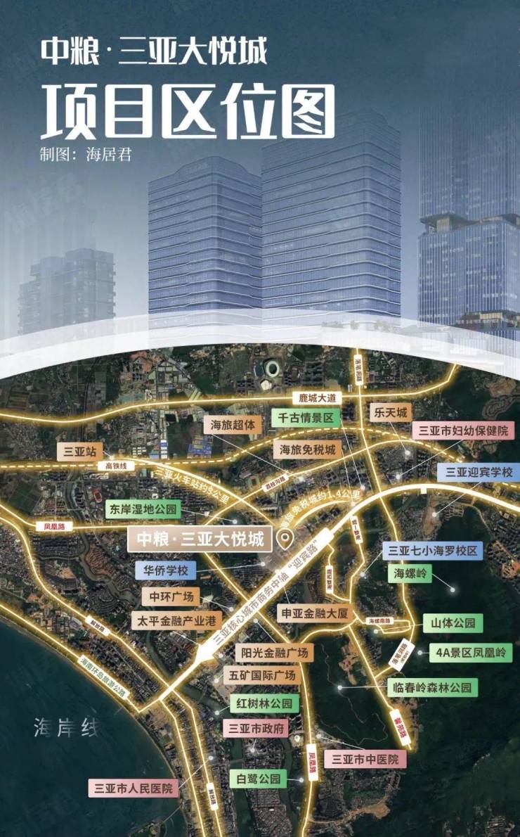 从区位看,项目处于三亚中央商务区(CBD)的东岸单元,这里既是自贸港总部经济区的 核心区域,也是三亚经济转型升级的重点板块。