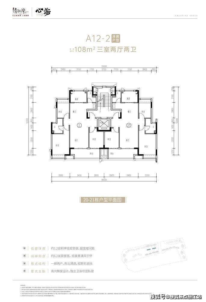 洋房产品户型图:建筑面积约108㎡,三房两厅两卫