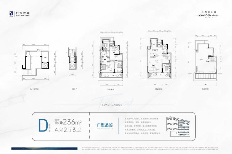 【D 边上户型 约236㎡四房二厅三卫】