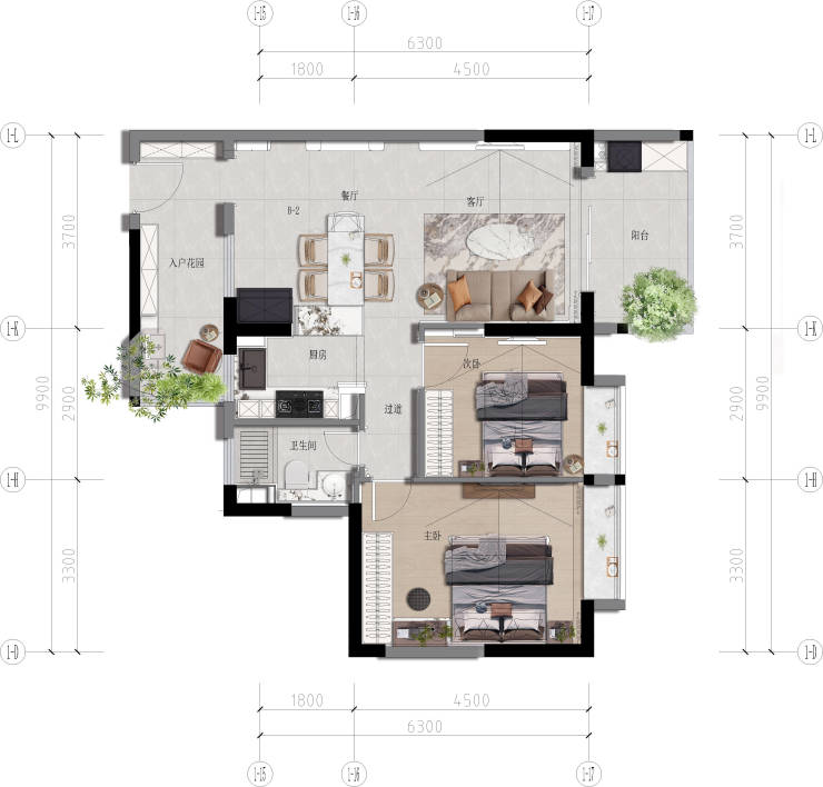 【B3 奢阔大平层 建面约89㎡ 三室两厅两卫】