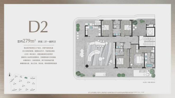 项目户型面积从约188-610㎡,全部为大平层设计,无入门级产品,确保了圈层的纯粹性和居住的舒适度。