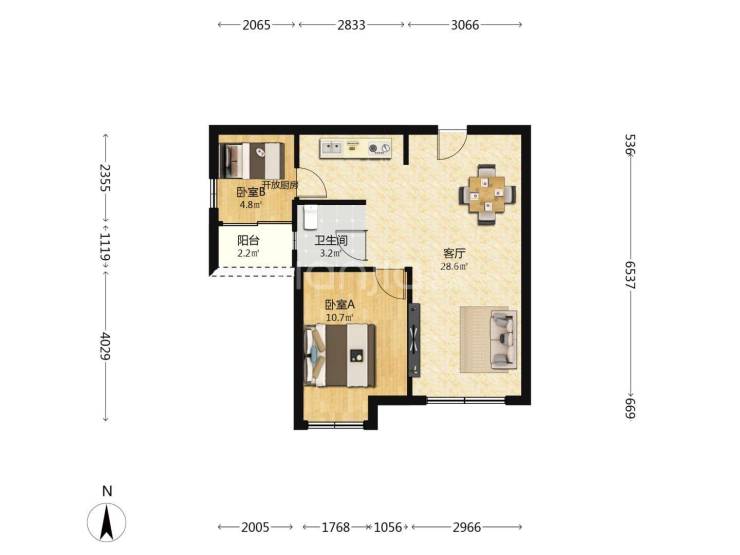 【户型】2房2厅1卫