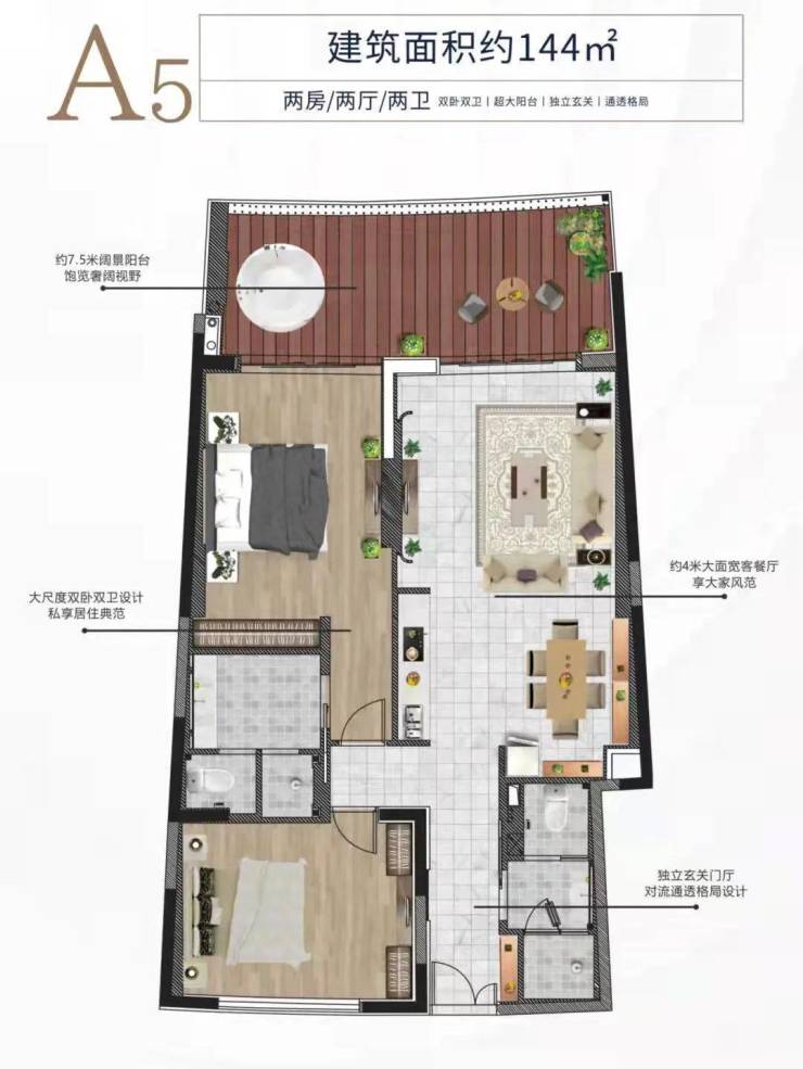 A5户型约144平方米 两房两厅两卫