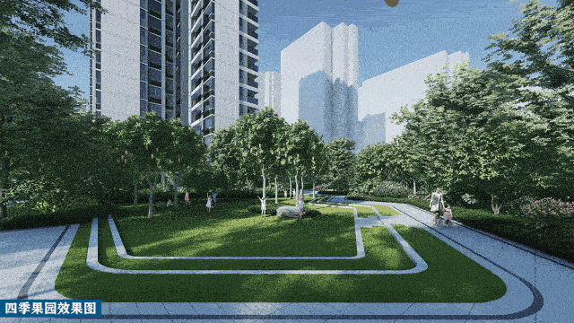 再往里走,社区就呈现了一年四季的园林景观,绿浪花园、紫薇径、四季果园、木棉谷这四大节点就是通过种植不同季节的植被来实现四季景观的变化,犹如项目名称“锦绣四季”一样。