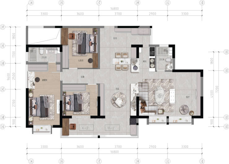 【B3 奢阔大平层 建面约89㎡ 三室两厅两卫】