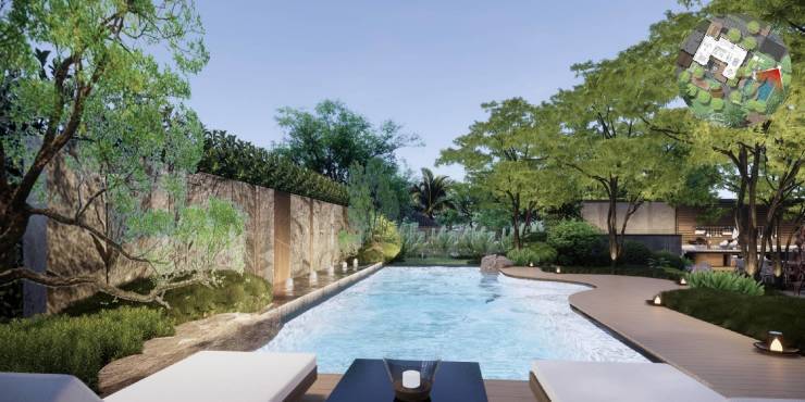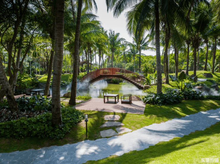 园林设计以杭州法云安缦为蓝本,师法自然、禅意幽远。悉心挑选 40 种热带特色植被,葱郁繁茂、四季繁花。更珍视原地块 4 棵百年古树,以此为核心景观节点,古木参天、岁月沉淀,与新植交相辉映,构筑宁静深邃、自然野趣的园林画卷,让每一步归家皆为穿越诗意秘境的悠然旅程。