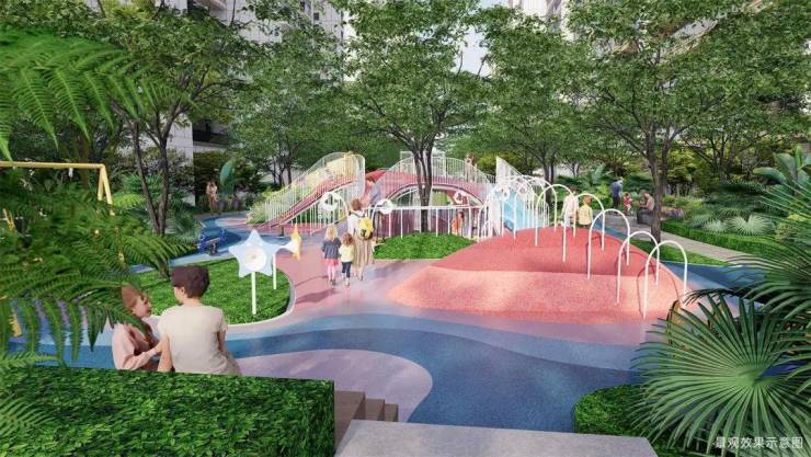 社区采用架空层设计,规划有儿童游乐区、运动健身区、长者颐养区、活力互动区4大功能场景,以丰富互动体验,给予生活更多乐趣。