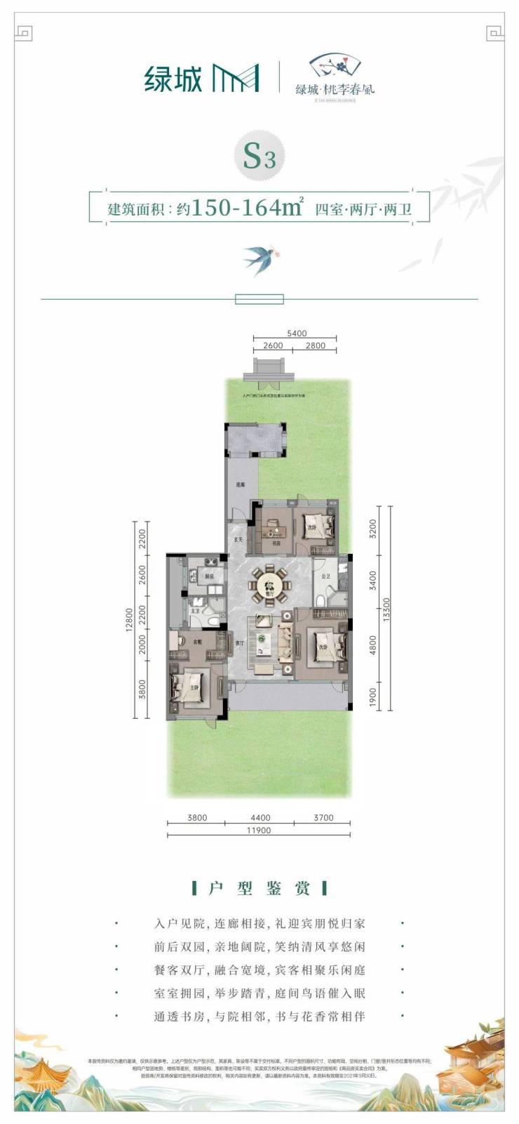 每家每户均享有阔尺庭院,一楼自带大庭院,在庭院里植一株杏花,便是归家的方向;二楼平层结构,以空中庭院,让天空及园景在院落里相逢;三加四楼复式结构,衔接诗意庭院,可品晨光熹微,可观夜幕星辰,梦田中的理想生活触手可及。