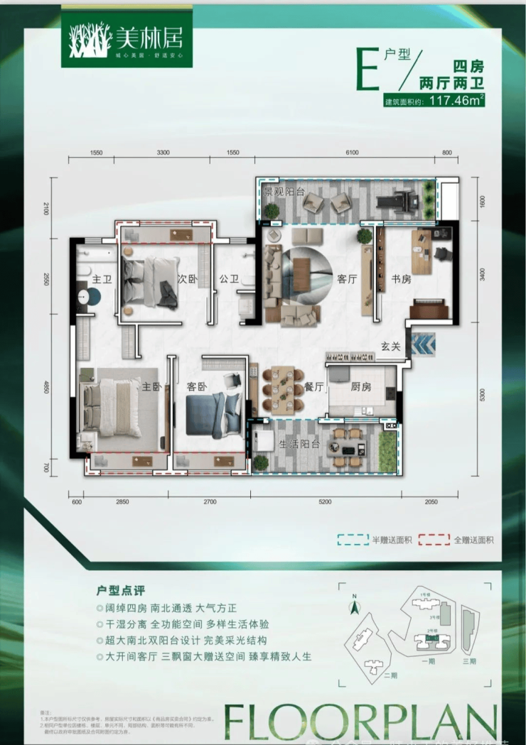 【E户型117.46㎡四房两厅两卫 】