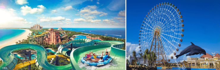亚特兰蒂斯水上乐园、海昌梦幻娱乐不夜城、Hello Kitty主题乐园、国际游艇码头、国际锦标赛级高尔夫球场、“神州第一泉”南田温泉、蜈支洲岛5A风景区等。