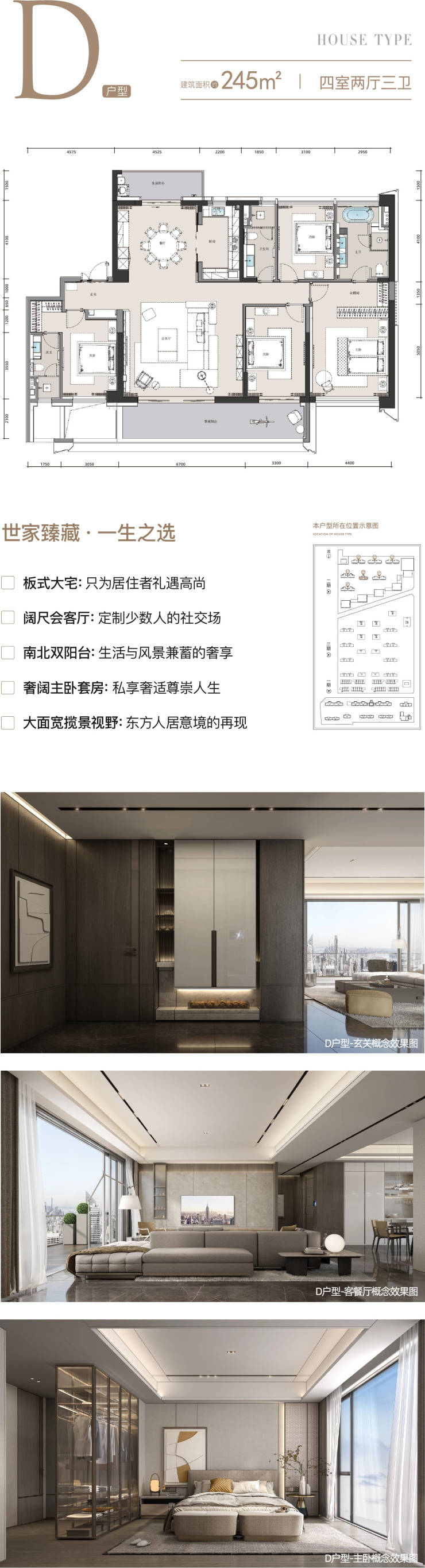 特邀全球15位设计大师加盟设计团队,并远赴多地多国考察,共同探讨前瞻性、[长期主义]社区的铸造理念,设计方案历经1600个日夜打磨,取法一线城市壕宅作品标准,只为圈层人士,造顶峰生活。