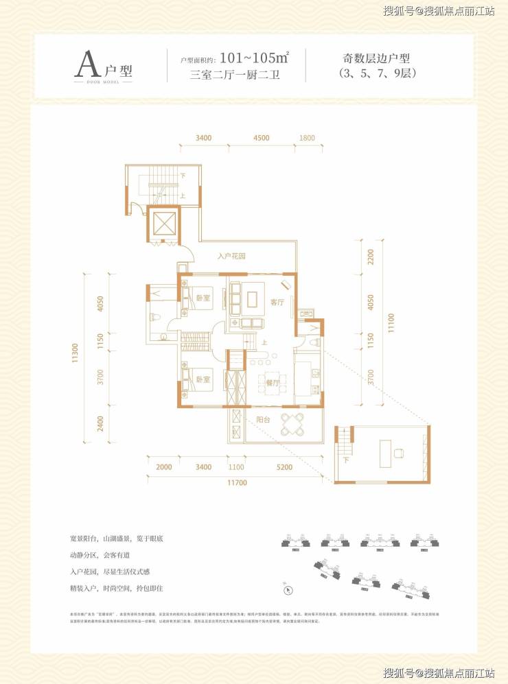户型:约101-105㎡三居室