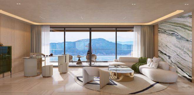 建筑面积约117-175㎡藏品级户型,110%超高得房率在湾区实属罕见,堪称“空间利用典范”。约3.15米层高突破物理界限,赋予空间精神性的高度。约9-12.5米超阔巨幕阳台系统,与宽厅及全景落地窗,共同构建出融合观景、社交与休憩的复合场域。