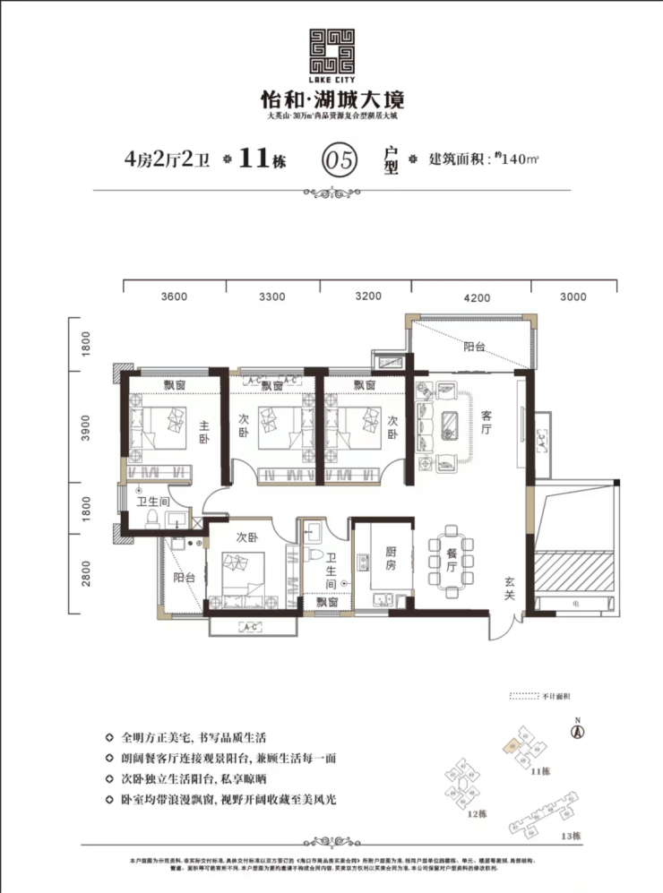 ★11栋,26层,2梯4户,137/140/148㎡。