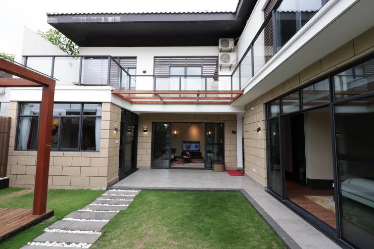 A1留云小院,套内面积约76㎡,使用面积约128㎡,220万起,两房两厅三卫,可改三房,海南稀缺小别墅,独门独院设计,一层大面积私家庭院,带温泉泡池,半敞开客厅,双卧套间。