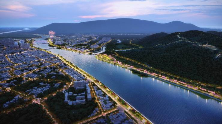项目规划总面积约11.4平方公里,包括大溪岭公园(山)、陵河沿岸景观打造(水)、陵水河南岸老城微更新(街)、陵水河北岸城市更新(城)、陵河入海水上潮玩(海)五个子项目,整体项目依托陵水河开发,拟分为一期首开区、一期次开区、二期、三期四个阶段,傍山邻水望海瞰街,形成以美好栖居、商业服务、产业办公为主,集“山、水、街、城、海”功能规划于一体的滨水理想新城中心。