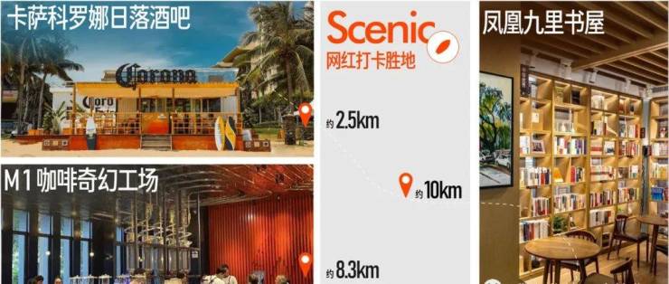 N多网红打卡点 —— 卡萨科罗娜日落酒吧(约2.5km)、M1咖啡奇幻工场(约8.3km)、冲浪俱乐部、书屋等网红娱乐丰盈海上趣味生活。