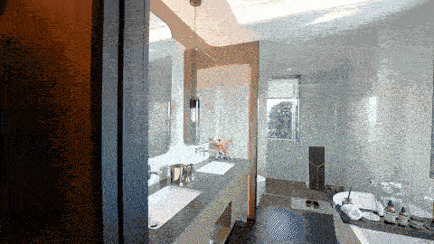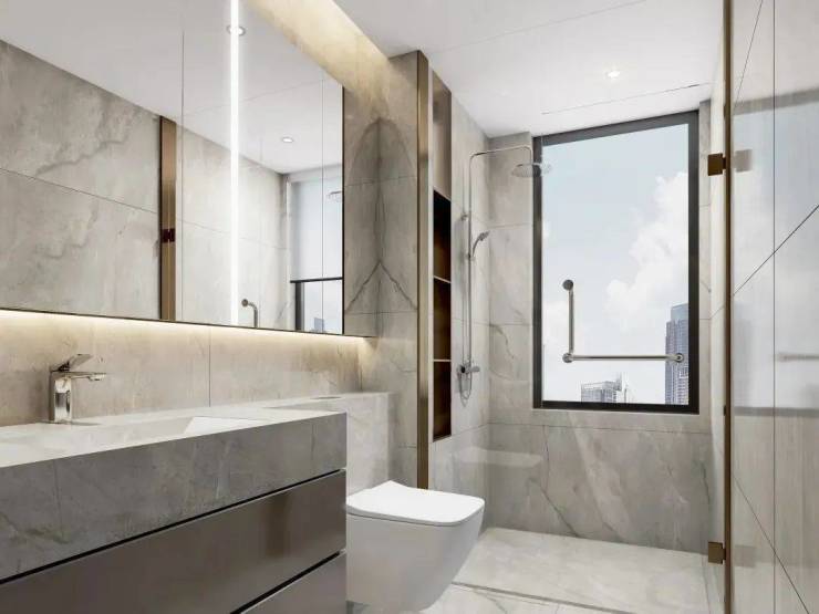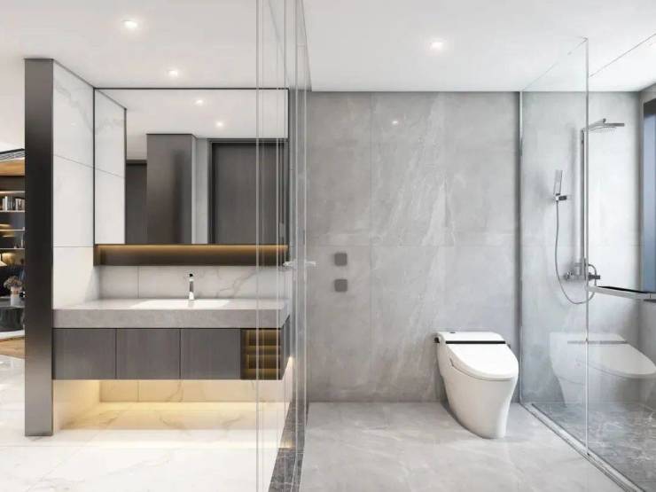 独立卫浴空间,借鉴了高端酒店的设计风格,采用相互独立的双台盆设计,彼此陪伴但又保持适度的距离。贴心配置智能浴缸,当夜幕降临之时,浴缸里来一次身心浸泡,静静眺望窗外的夜色,享受属于自己的片刻时光。淋浴房设计,摈弃臃肿挡水条,极窄边框的玻璃隔断,实现了空间通透感的最大化。严选天然石材墙面,淋浴屏地面抽槽工艺,每一个细节都沉淀着对精致生活的巧思。
