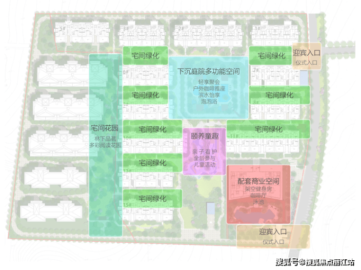 整个园林,以下沉庭院、颐养童趣、宅间花园3大空间版块,倾其所有打造出了让业主有更多沉浸感、闲适的生活体验。