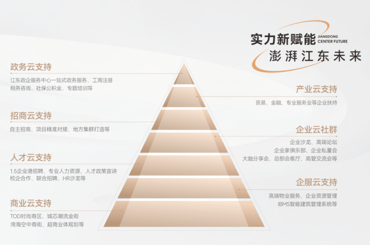 定制构建“江东云”服务体系,聚合七大运营服务动能,为企业提供全链条、全周期一站式服务。