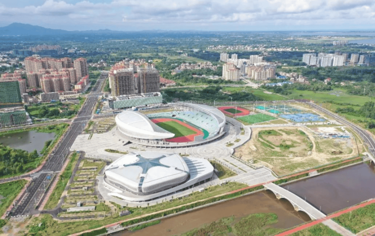 隔路相望海南省重点工程“文化体育广场”(2022年投入使用)包含:体育场、体育馆、游泳馆、网球场、篮球场、排球场、青少年活动交流中心、艺术馆、图书馆、展览馆、万安书院、市民广场等。