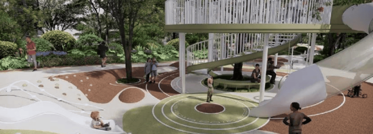 项目将岛屿、雨林、礁石、沙滩、椰风五重海景元素赋予场地景观,规划围合式超大央景花园、超 500㎡阳光泳池、全龄架空层,营造社区活力生活场景。