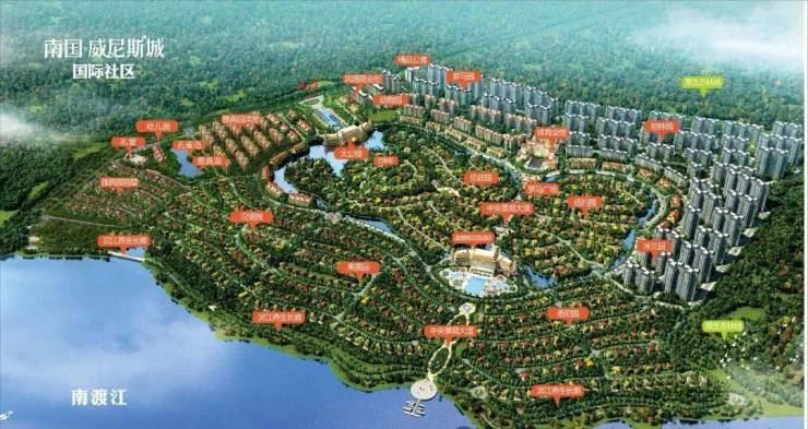 南国威尼斯城位于海口南郊云龙板块,规划为千亩欧式养生度假大盘。周围被湿地森林环绕,南傍海南母亲河--南渡江36曲溪,内享2万㎡内湖活水循环,小区内还有两个人工湖泊。依山傍水,环境优越。