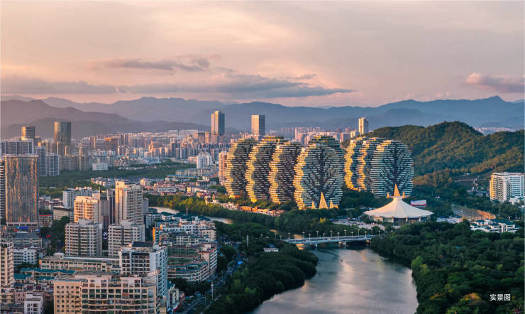 项目坐拥“山-城-河-园-海”五重盛景,形成独特的“藏风纳海”生态格局。