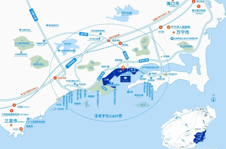 项目与高铁神州站直线距离仅约6公里,2站即达三亚、5站即达海口,约6公里即达海南环岛高速神州半岛匝道出入口,约10公里即达兴梅大道,轻松环游全岛。往北约53公里即达琼海博鳌机场,乘高铁5站即达三亚凤凰机场(约110km)、4站即达海口美兰机场(约150km),全国主要城市航班直飞。