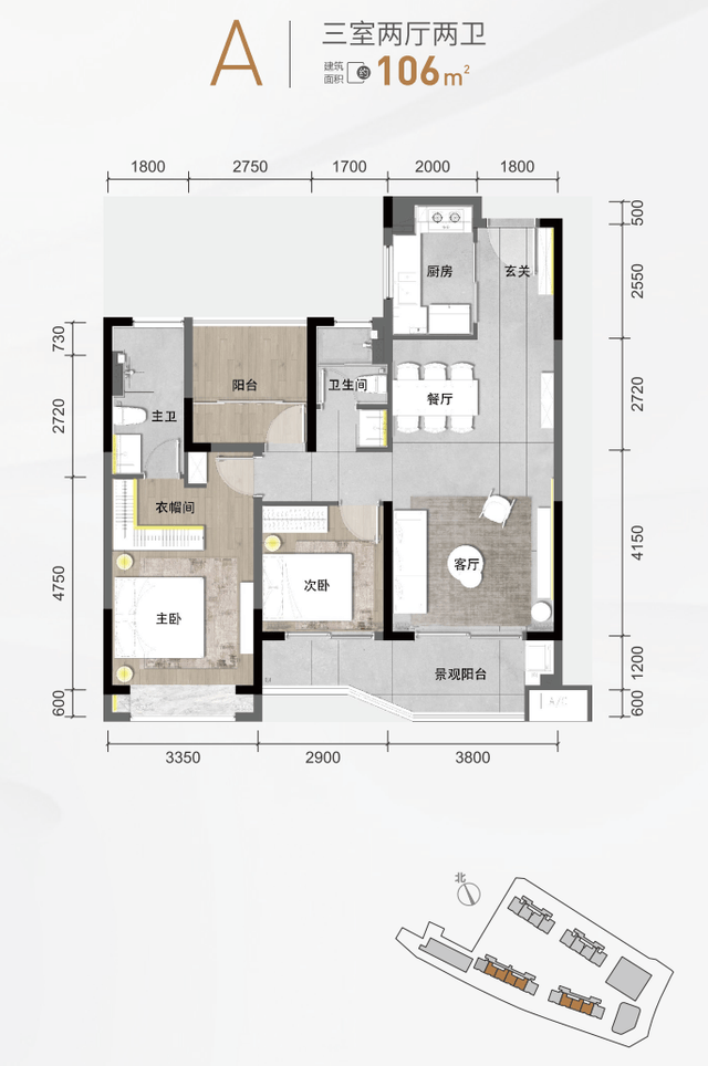 A户型:建面约106㎡三房