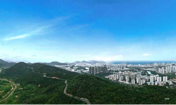 项目坐拥“山-城-河-园-海”五重盛景,形成独特的“藏风纳海”生态格局。