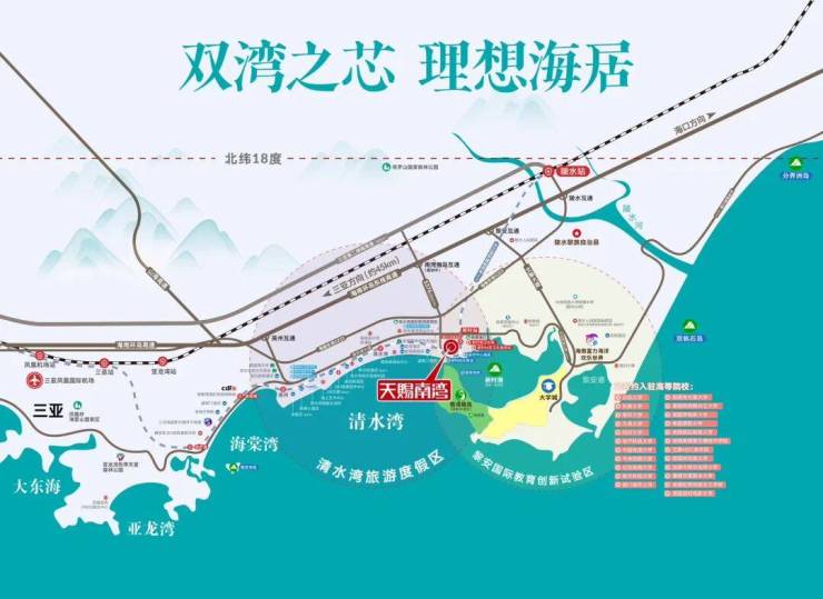 清水湾拥有闻名世界的“会唱歌的沙滩”、长达12公里的纯美海湾、正南向的观海视野以及北纬18°无可替代的气候环境,这样的天赋优势让清水湾成为毋庸置疑的高价值湾区。