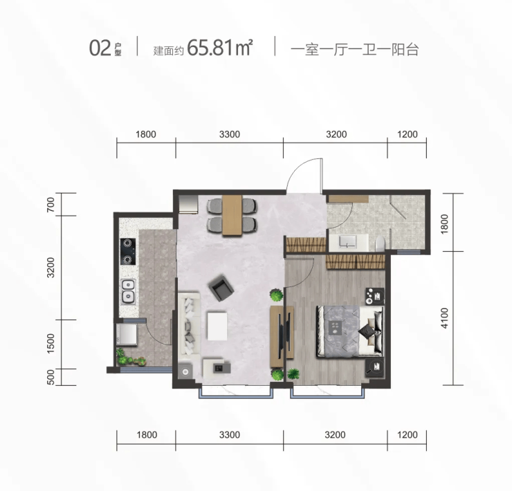 02户型丨建筑面积约65.81㎡