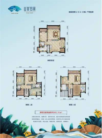 262-309平米,赠送80-150平米负一层,花园面积120-400平。总价740-1014万;