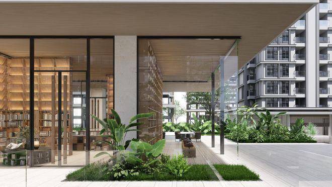 海罗单元独具匠心,构建三级城市花园网络与三级自然空间界面。项目与之呼应,一期对应一级界面,二期以“都市绿洲秘境”理念对应二级界面,借“内向造景+引山入园”,打造私有化自然秘境,实现自然与城市生活深度融合。