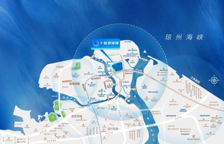 中交·蓝色港湾落子海口市新埠岛中芯地带,作为海口市真正的“入海口”之心,这里西面链接着繁华的海甸岛与主城区,向东扼守自贸先行示范区江东新区门户,三面临江一面望海,作为联系海口市主城区与江东新区的重要功能组团,未来将建设成为“一个开放自由、创新集聚、彰显时代活力与海岛魅力的国际创新自在岛”。