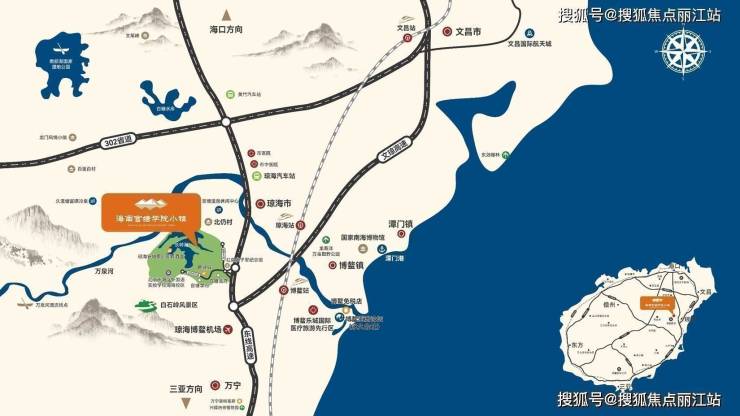 以博鳌机场,琼海高铁站、博鳌高铁站、海南环岛高速,构建小镇多维立体交通网络,出行更加便捷。